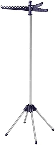 Durch die 3 drehbaren Arme können Sie Ihre Kleidungsstücke bequem aufhängen und trocknen lassen, ohne dass sie sich berühren und knittern. Dies sorgt für eine schonende Trocknung und verhindert unschöne Faltenbildung. Die Wäschespinne ist zudem mit einem blau-silbernen Design versehen, das modern und ansprechend wirkt und sich harmonisch in jeden Wohnraum einfügt.