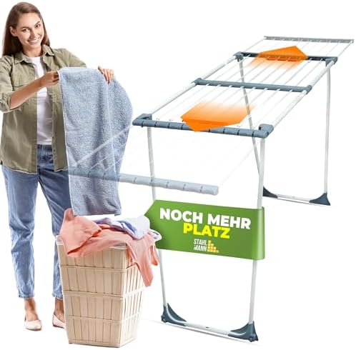 Wenn Sie also auf der Suche nach einem zuverlässigen Wäscheständer sind, der Ihren Anforderungen an Stabilität, Flexibilität und Platzersparnis gerecht wird, ist der STAHLMANN klappbare Wäscheständer mit 20 m Trockenfläche die ideale Wahl für Sie. Gönnen Sie sich diesen praktischen Helfer und machen Sie das Wäschetrocknen ab sofort zu einem stressfreien und effizienten Erlebnis.