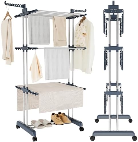 Insgesamt ist der Trintion Wäscheständer mit 3 Ebenen ein praktisches und zuverlässiges Hilfsmittel im Haushalt. Er überzeugt durch seine Funktionalität, Mobilität und Stabilität. Mit seinem platzsparenden Design und der Möglichkeit zur individuellen Anpassung ist er die ideale Lösung für das Trocknen Ihrer Wäsche. Egal ob drinnen oder draußen – mit dem Trintion Wäscheständer erledigen Sie die Wäschepflege im Handumdrehen.