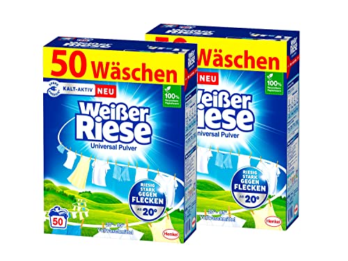Das Weißer Riese Universal Pulver kommt in einer praktischen Packung mit insgesamt 100 Waschladungen, aufgeteilt auf zwei Beutel mit jeweils 50 Ladungen. Dadurch ist das Waschmittel besonders ergiebig und spart Zeit und Geld. Durch die hohe Konzentration des Pulvers wird zudem eine geringere Dosierung benötigt, was die Umwelt schont.