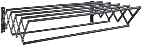 Der YOUDENOVA Wäscheständer Wandmontage ist ein platzsparender Trockenständer, der perfekt für den Waschraum oder das Badezimmer geeignet ist. Mit seinen 7 ausziehbaren Stangen bietet er ausreichend Platz zum Trocknen von Kleidung, Handtüchern oder anderen Textilien. Der Wäschetrockner ist aus hochwertigem Metall gefertigt und in der Farbe Schwarz gehalten, was ihm ein modernes und schickes Aussehen verleiht.